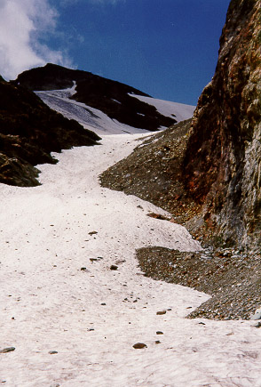 En prenant pied sur le glacier. Si la première partie est devenue un névé, la deuxième est bien un glacier | ![]() |