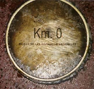 | Sur Plaza de armas, La plaque du Km 0 des routes du Chili. Cherchez