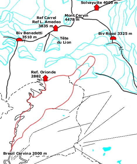 basse. Il est possible de poursuivre jusqu'au bivouac Rossi (crampons