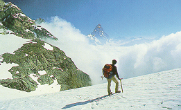 | Vue du col vers le Cervin (celle-ci n'est pas de nous mais nous n'avons pas eu la chance d'avoir cette vue à cause des nuages) |