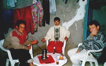 | Lundi 11.10 | On change de vallée : Tizi mzik puis Tizi Oussem dans le brouillard vers midi, descente sur Imi Ourlad pour la nuit (gîte très "authentique" terre battue, pas d'électricité, mais accueil chaleureux par le giteur avec un café cassé et des galettes + huile d'olive au goûter, couscous le soir). |