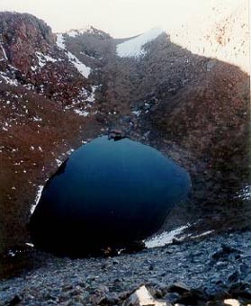 Au creux de son sommet, une petite lagune bordée